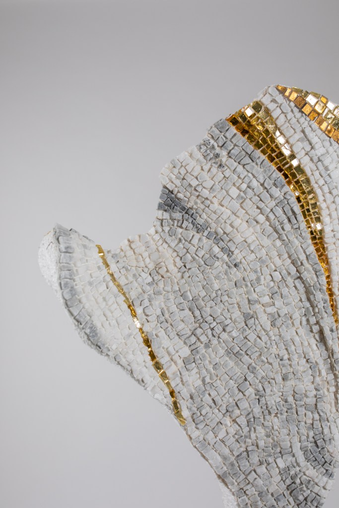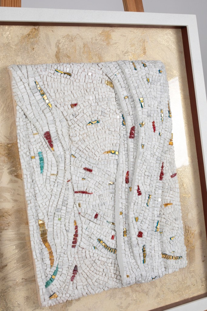 Marijke Duportail’s style can be described as contemporary mosaic art, where her masterpieces come to life in two or three dimensions. Her works exhibit a captivating interplay of vibrant glass, Smalti infused with delicate gold accents, or tranquil Carrara marble adorned with subtle color accents. Innovative and expressive, Marijke’s art is akin to painting with stones in motion, capturing the essence of her subjects with remarkable skill and finesse.